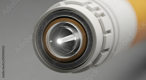 Illuminated Optical Core Emitting Focused Light in a High-Precision Scientific Instrument, Showcasing Advanced Technological Engineering and Innovation