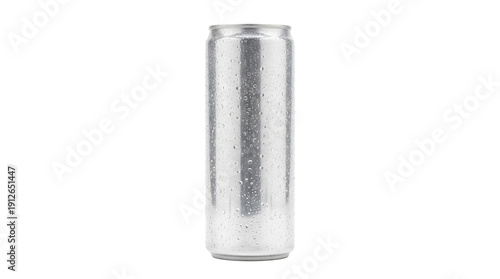 Condensation covered, tall silver aluminum beverage can (500ml slim design) with water droplets, isolated on a transparent background. Perfect blank mockup for soda, energy drink, or beer packaging.
