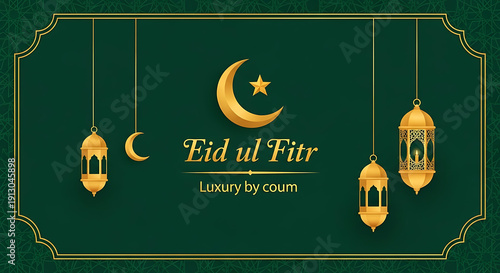 Eid ul Fitr celebration lanterns and crescent moon with star isolated on transparent background