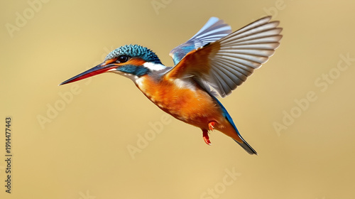 Common Kingfisher in flight, wings open and blue feathers glistening. Vivid and realistic, transparent background.
