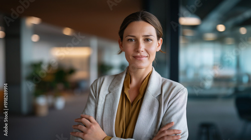 Confident faceless woman in professional attire standing in corporate office business professional executive presence workplace confidence professional success corporate