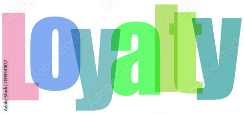 Colorful and stylized text spelling out the word loyalty with vibrant gradients isolated on transparent background