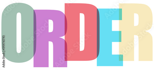 Colorful block letters spelling out the word order in a playful design isolated on transparent background