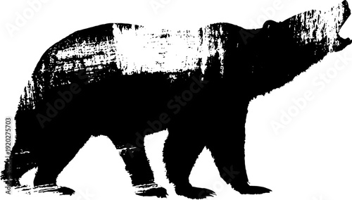 Fierce bear emblem with banner in high contrast ink for retro design projects