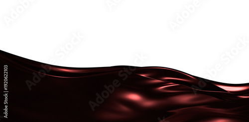 Abstract satin wave in dark red color, flowing across the frame, isolated on white. Texture, elegance, luxury and fluidi