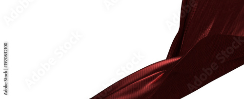 Close up of deep red fabric draped and folded. Soft texture against a stark white background.