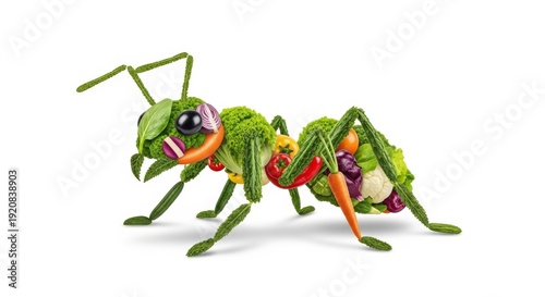 Creative ant made of vegetables on white background