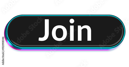 Join Button – Black 3D Neon Frame UI Call to Action Button with Cyan and Pink Glow Isolated on Transparent Background png