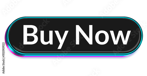 Buy Now Button – Black 3D Neon Frame UI Ecommerce Button with Cyan and Pink Glow Isolated on Transparent Background png