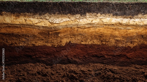 Cross section of earth showing soil layers and grass