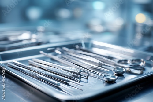 surgical instruments are arranged on a metal tray