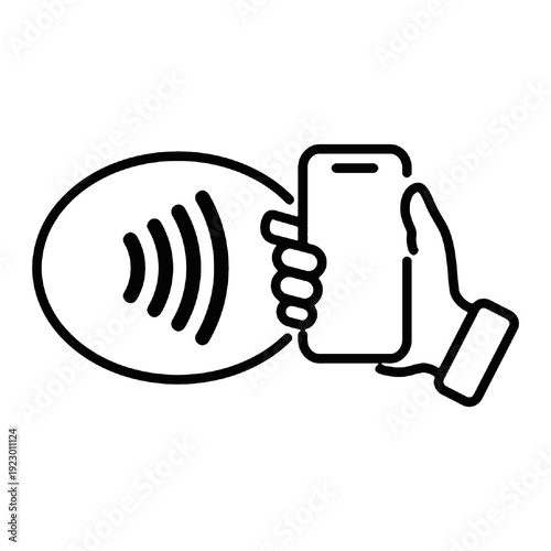 NFC technology. Hand holding Phone. Contactless wireless pay sign logo. Near Field Communication NFC payment concept. Contain less. NFC payment with mobile phone. Credit card.