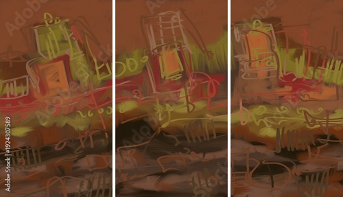Modern interior triptych. The picture is painted by hand on a tablet.