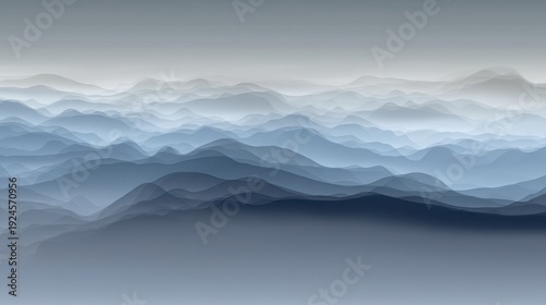 Serene Layered Mountains in Soft Blue Hues with Misty Background