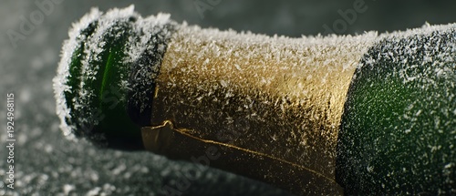 A close up of a bottle neck covered in frost