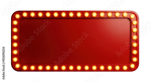 A red marquee sign with yellow lights on a transparent background for advertising