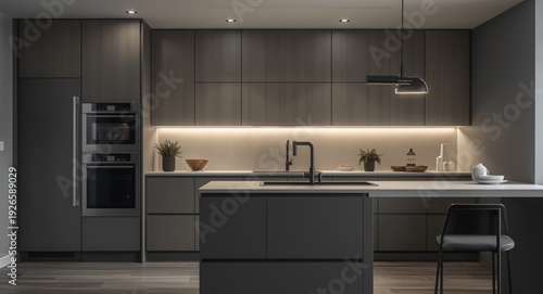 Sleek kitchen design featuring modern furniture and cutting edge appliances