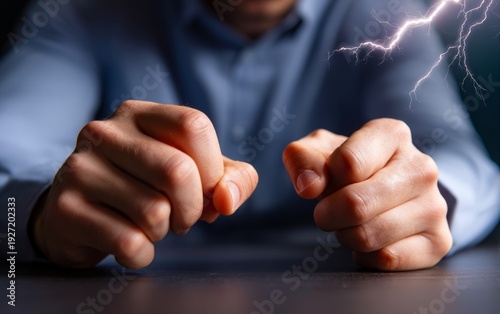Nervous Man Tapping Fingers on Table with Tension
