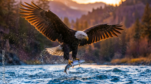 Majestic Bald Eagle Hunts at Golden Hour
