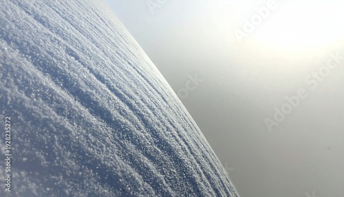 Teksturowana powierzchnia zaśnieżonego pola z wyraźnymi bruzdami pod jasnym, zimowym niebem tworząca minimalistyczny krajobraz pełen spokoju i ciszy.