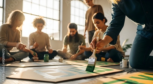 Creative Group Painting Green Art for St. Patricks Day Celebration in Sunny Studio Workshop