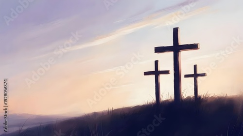 Minimalist Calvary hill with crosses - Perfect for lenten season.