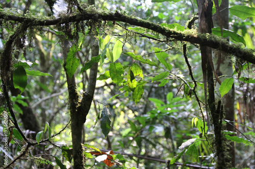 promienie słoneczne przedzierające się przez zieleń dżungli