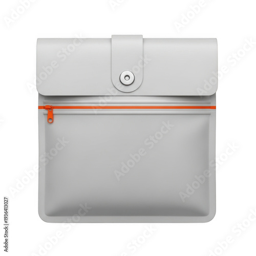 A sleek gray pouch with a vibrant orange zipper and snap closure.