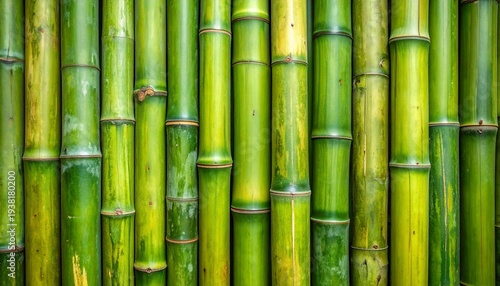 竹の節と節の間の滑らかな表面が整然と並ぶ緑の竹幹テクスチャ背景