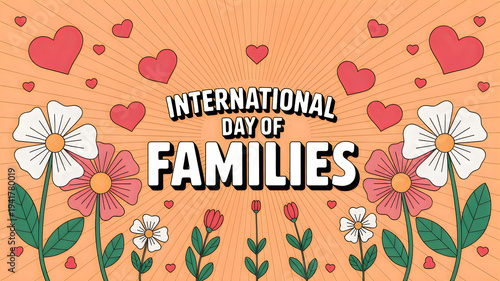 Celebrating international day of families with colorful flowers and hearts