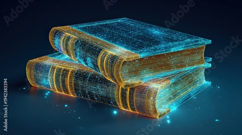 Two luminous digital books stacked atop each other, radiating with glowing energy, symbolize the boundless potential of knowledge. ..Created with Generative AI, not depicting real subjects.