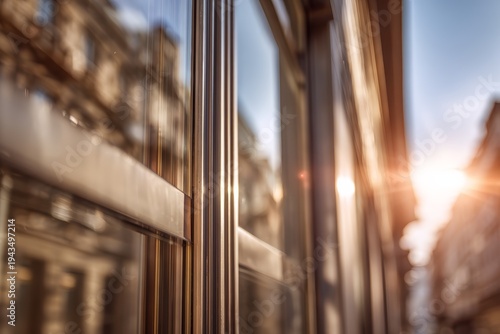 Glass window frame refracts bright sunlight