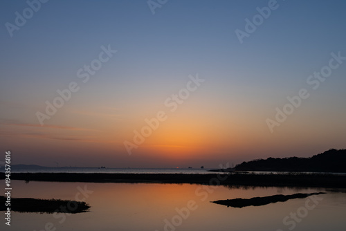 空の映える干潟の向こうの日の出の瞬間20260301