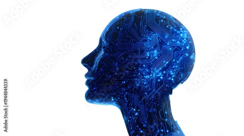 Abstract Blue Human Head Silhouette with Cosmic Nebula Inside.