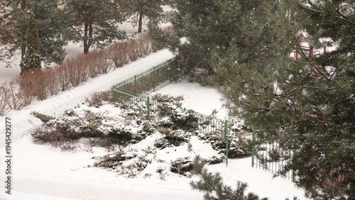 Krajobraz miejski, teren pokryty grubą warstwą śniegu