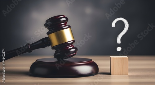 Gavel Next to Question Mark on Wooden Block Depicts Justice, Law, and Uncertainty