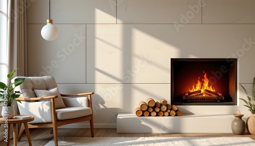 Cozy Modern Living Room with Warm Fireplace and Lounge Area
