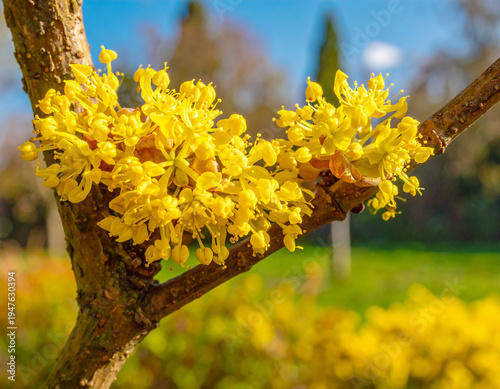 식물-산수유-산수유나무-산수유 가지-산수유꽃-꽃-봄꽃-노란꽃-노란 꽃 가지-나무에 피어 있는 노란꽃-노란색-야외-클로즈업