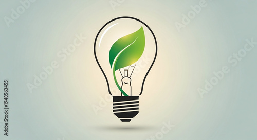 A lightbulb with a green leaf inside represents eco-friendly technology innovation