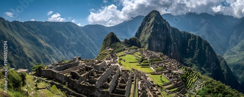 Machu Picchu panoramic ruins and Andes mountains sharp detail