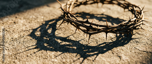 The stark shadow of a crown of thorns falls upon ancient stone, embodying profound suffering, sacrifice, and an enduring symbol of faith and spiritual reflection