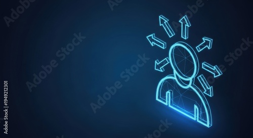 Conceptual human figure with radiating ideas and multiple directional arrows, representing innovation and strategic thinking