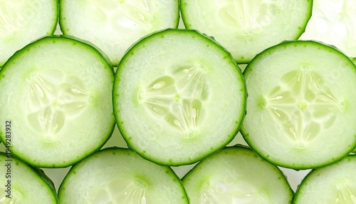 realistic photo of fresh green cucumber slices stacked neatly isolated on pure white background, natural texture detail, studio lighting, 8k