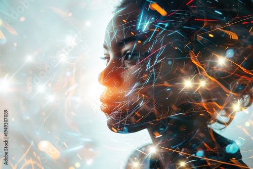 Abstract Portrait of a Child with Glowing Lights and Digital Connections Representing Imagination and Future.