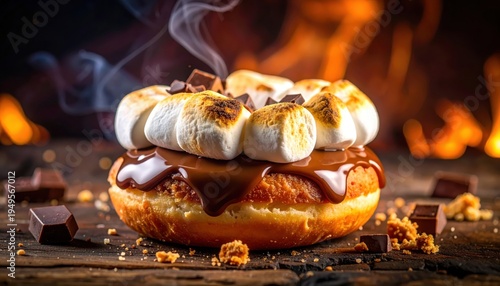 Decadent S mores Donut Topped with Toasted Marshmallows, Chocolate Glaze, and Graham Cracker Crumbs