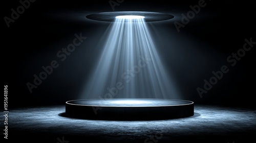 A focused, dramatic light falls upon a round platform within a dark setting, generating a mystical and thought‑provoking ambience