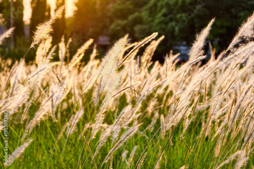cogon grass or Imperata cylindrica meadow at sunrise