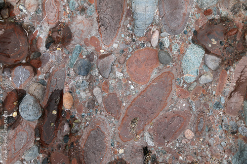 ciekawe formacje skalne z wtopionymi w skałę kamieniami u wybrzeża irlandii