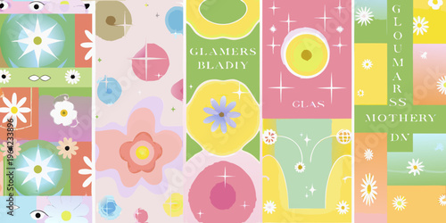 A vibrant colorful digital illustration featuring abstract shapes and floral motifs