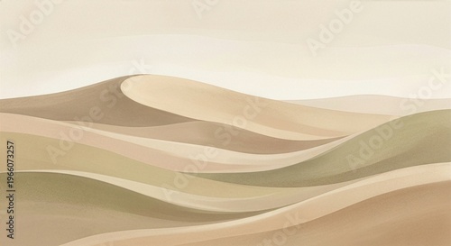 Minimalistyczny krajobraz inspirowany pustynią, miękkie wydmy, pastelowe beże i piaski, bardzo delikatne światło zachodu słońca, spokojny, medytacyjny klimat